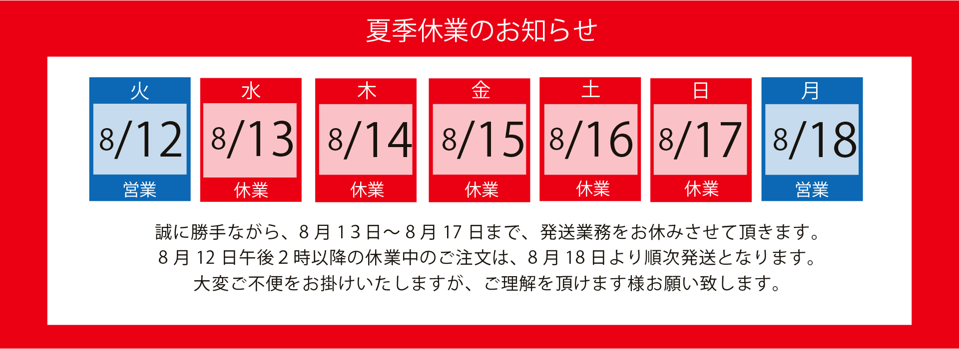 お盆期間中の休業について